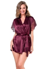 Комплект с шортами, топом и коротким халатом Mia-Amore выполнен из смесового однотонного шелка. Топ полностью выполнен из кружева. Рукава халатика выполнены из тонкого кружева, на шортах кружевные вставки. По центру лифа топа изящный бантик с подвеской. Халат дополняет эффектный широкий пояс. Состав: 70% натуральный шелк, 25% полиэстер, 5% эластан