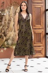 Длинная элегантная сорочка Mia-Amore полуприлегающего силуэта на широких бретелях, без подреза под грудью, выполнена из принтованного смесового шелка и дополнена кружевом. Декор - маленький атласный бантик с подвеской по центру выреза сорочки.