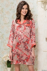 Рубашка Mia-Amore с длинным рукавом из смесового шелкового полотна. Горловина и низ рукавов обработаны атласом кораллового цвета. Состав 70% натуральный шелк, 25% полиэстер, 5% эластан