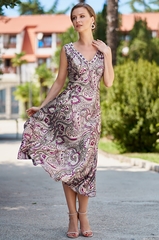 Длинная сорочка Mia-Amore с V-образным вырезом, выполнена из принтованного смесового шелка. Вырез сорочки декорирован обтачкой из принтованного полотна. Лиф украшен бантиком с подвеской. В комплект можно подобрать халат-кимоно из этой же коллекции. Состав 70% натуральный шёлк, 25% полиэстер, 5% эластан