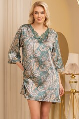 Туника свободного покроя от бренда Mia Amore сочетает в себе стиль и комфорт. Изготовленная из смесовой ткани (70% натурального шелка, что обеспечивает приятные ощущения при контакте с кожей, 25% полиэстера для прочности и 5% эластана для идеальной посадки), она подчеркнет вашу индивидуальность благодаря уникальным цветовым решениям – серебристому и зеленому оттенкам. Кружевная отделка добавляет изделию элегантности и романтики. Эта модель подойдет как для повседневного образа, так и для особых случаев, создавая эффектный акцент вашего стиля.