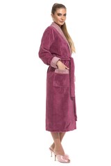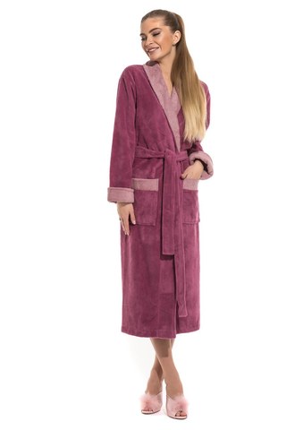Изысканный стиль и превосходное качество в новой коллекции женских халатов из махровой ткани с добавлением бамбука. Внешняя сторона под велюр, внутренняя - петельчатая махра, создающая приятный и легкий массажный эффект. Модель удлиненная. Классический фасон с поясом на талии и накладными карманами. Лаконичный дизайн, нежные пастельные тона, комбинированная отделка воротника, манжета рукава и карманов - ничего лишнего, удобно и красиво.Женственный и нежный, он подарит комфорт, свободу и ощущение уюта и роскоши своей хозяйке!Бамбуковый материал гораздо легче обычного хлопка (при этом теплый), нежнее и приятнее к телу. Легко стирается и быстрее сохнет. Обладает гипоаллергенными и антибактериальными свойствами. Противостоит образованию запахов и имеет долгий срок службы.