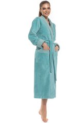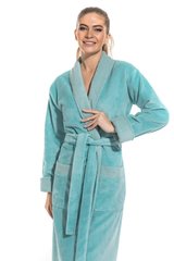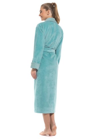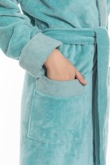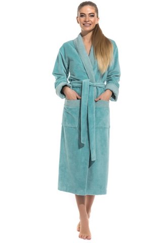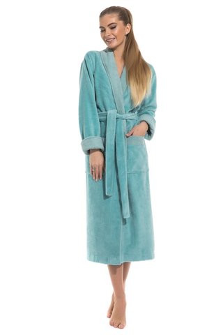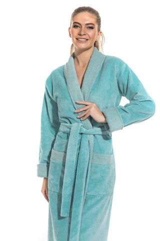 Изысканный стиль и превосходное качество в новой коллекции женских халатов из махровой ткани с добавлением бамбука. Внешняя сторона под велюр, внутренняя - петельчатая махра, создающая приятный и легкий массажный эффект. Модель удлиненная. Классический фасон с поясом на талии и накладными карманами. Лаконичный дизайн, нежные пастельные тона, комбинированная отделка воротника, манжета рукава и карманов - ничего лишнего, удобно и красиво.Женственный и нежный, он подарит комфорт, свободу и ощущение уюта и роскоши своей хозяйке!Бамбуковый материал гораздо легче обычного хлопка (при этом теплый), нежнее и приятнее к телу. Легко стирается и быстрее сохнет. Обладает гипоаллергенными и антибактериальными свойствами. Противостоит образованию запахов и имеет долгий срок службы.