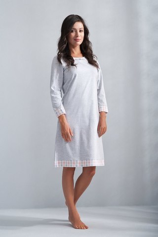 Женская сорочка с рукавами 7/8. Шея, манжеты и низ сорочки украшены клетчатыми вставками. Длина до колена. Теплая, приятная к телу. Состав: 100% хлопок Примечание. На данный товар, услуга примерки второго размера не предоставляется.