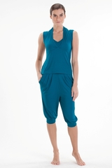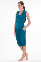 Актуальный комплект из нежной натуральной вискозы - отличный вариант на каждый день как на улицу, так и для дома и отдыха! Состоит из майки с оригинальными двойными лямками, одна из лямок бесшовная и перекинута через шею, вторые уходят классически за зону плеч. Бриджи с низкой проймой в стиле "афгани", свободного геометрического покроя, с широким поясом, и манжетам внизу, модный, современный стиль.Расцветка - хит сезона 2016!Состав: 100% вискоза