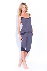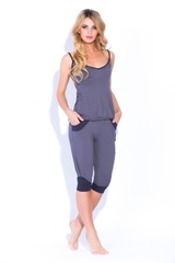 Актуальный комплект из нежной натуральной вискозы - отличный и практичный вариант на каждый день! Идеален в качестве одежды для спорта, дома или отдыха. Универсальная свободная и комфортная модель.Комплект состоит из майки с тонкими лямками, открывающими область плеч, в нижней части майки - кулиска, позволяющая легко сформировать нужный вам силуэт. Бриджи с низкой проймой в стиле "афгани" с комбинированными вставками, свободного геометрического покроя, с широким поясом, и манжетам внизу, модный, современный стиль. Комбинированная расцветка из ткани полу тонов - хит сезона!Состав: 100% вискоза