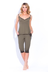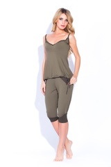 Актуальный комплект из нежной натуральной вискозы - отличный и практичный вариант на каждый день! Идеален в качестве одежды для спорта, дома или отдыха. Универсальная свободная и комфортная модель.Комплект состоит из майки с тонкими лямками, открывающими область плеч, в нижней части майки - кулиска, позволяющая легко сформировать нужный вам силуэт. Бриджи с низкой проймой в стиле "афгани" с комбинированными вставками, свободного геометрического покроя, с широким поясом, и манжетам внизу, модный, современный стиль. Комбинированная расцветка из ткани полу тонов - хит сезона! Состав: 100% вискоза
