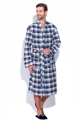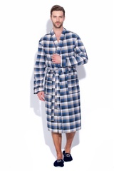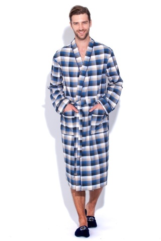 Сверхлегкий хлопковый халат Scotland №31(PECHE MONNAIE France 2117/2). В подарочной коробке.Мужской халат из тканного полотна - поплин Французской ТМ PECHE MONNAIE - это продукт из 100% натурального эко-хлопка высшей категории. Необыкновенно легкая, мягкая и прочная ткань делает халат невесомым, не сковывает движений и позволяет телу свободно "дышать". Воротник в стиле кимоно, оптимальная длина ниже середины икры(рост модели на фото 188 см.), декоративный кант, украшает полы халата, ворот и манжеты рукава, полноценные накладные карманы для мелочей. Красивый рисунок в мелкую клетку по всему изделию.