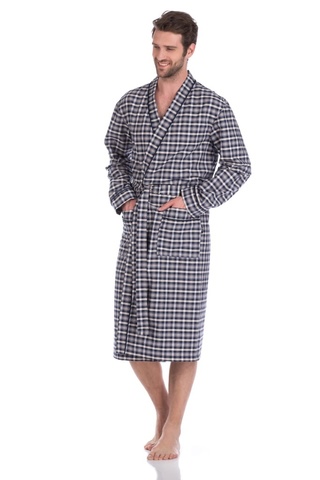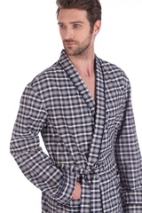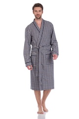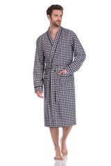 Мужской халат из тканного полотна - поплин Французской ТМ PECHE MONNAIE - это продукт из 100% натурального эко-хлопка высшей категории. Необыкновенно легкая, мягкая и прочная ткань делает халат невесомым, не сковывает движений и позволяет телу свободно "дышать". Воротник в стиле кимоно, оптимальная длина ниже середины икры(рост модели на фото 188 см.), декоративный кант, украшает полы халата, ворот и манжеты рукава, полноценные накладные карманы для мелочей. Красивый рисунок в мелкую клетку по всему изделию.