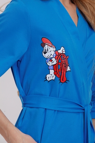 Легкий и нежный халатик в стиле "кимоно" из 100%-го хлопка. Укороченная модель. Рукав 3/4. Оригинальная отделка карманов и манжета рукава. Веселый принт на груди.