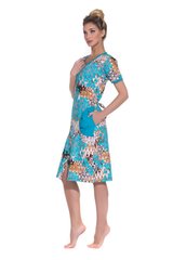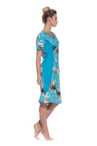 Легкий халатик на молнии из 100% хлопка. Удлиненная модель - чуть ниже колена. Красивая комбинация цветной и однотонной ткани в малиновых тонах. Декоративная отделка в виде волнистых оборок. Вшитый в боковые швы пояс позволяет создать приталенный силуэт, если завязать его сзади.