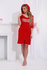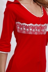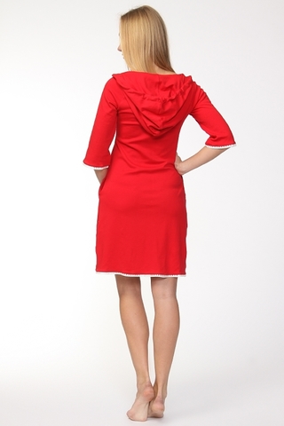 Элегантный домашний халат с капюшоном из натурального хлопка. Изысканные кружева из сплетения сердечек, эффектно украшают зону груди, кружевная отделка по полам халата и на рукавах. Красивый большой капюшон на шнурочках, с возможностью регулировки его размера.
