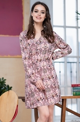 Туника-рубашка Mia-Amore длиной до колен с центральной застежкой на пуговицы выполнена из принтованного вискозного полотна. Ширина туники регулируется по талии с помощью узкого пояса-завязки. Состав: 100% вискоза