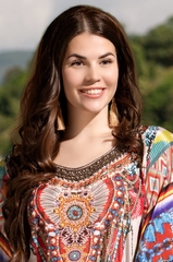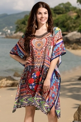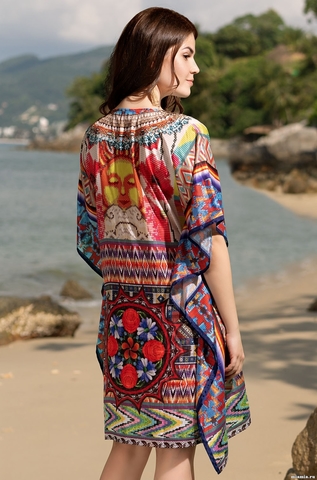 Туника Mia-Amore свободного кроя, выполнена из принтованного полотна. Горловина декорирована вышивкой из бисера.