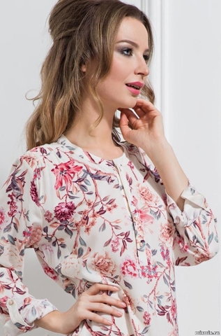 Туника Mia-Mella с длинным рукавом регулируемой длины выполнена из принтованного хлопкового полотна с добавлением бамбука. По переду туники декоративная планка на пуговицах. Состав 80% хлопок, 20% бамбук