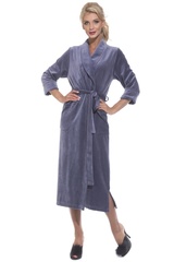 Этот удлиненный и в тоже время легкий велюровый халат идеально сидит на любой фигуре. Полноценные удобные карманы, небольшие элегантные разрезы по бокам, внутренние завязки для удобной и надежной фиксации по талии.