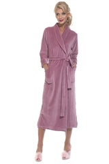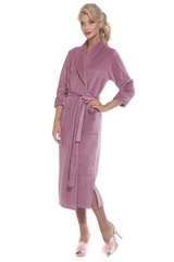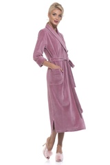 Этот удлиненный и в тоже время легкий велюровый халат идеально сидит на любой фигуре. Полноценные удобные карманы, небольшие элегантные разрезы по бокам, внутренние завязки для удобной и надежной фиксации по талии.
