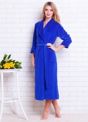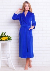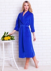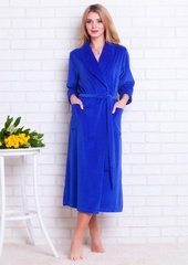 Этот удлиненный и в тоже время легкий велюровый халат идеально сидит на любой фигуре. Полноценные удобные карманы, небольшие элегантные разрезы по бокам, внутренние завязки для удобной и надежной фиксации по талии.