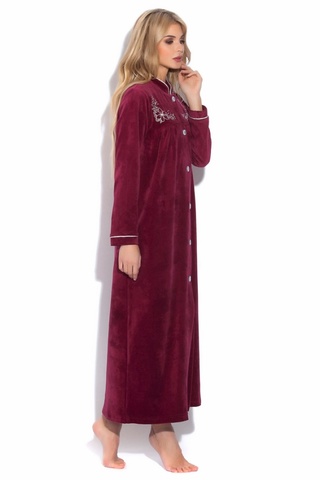 Шикарный удлиненный халат на пуговицах из благородного велюра в модном "восточном" стиле. Свободная модель слегка расклешается от зоны груди, абсолютно не сковывает движений и позволяет ощутить комфорт и полную свободу! Изысканная вышивка в виде нежных цветов серебристого цвета украшает верхнюю часть изделия. Воротник - стоечка красиво отделан кантом в цвет вышивки, полноценный рукав с декоративной окантовкой. Удобные и стильные пуговицы с серебристыми вкраплениями великолепно сочетаются с элементами отделки халата и позволят легко выбрать желаемую высоту запаха на халате. Нежный велюр очень приятен к телу и имеет благородный матовый отблеск.
