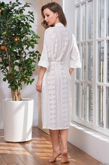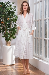 Длинный халат Mia-Amore с длинным рукавом. Выполнен из трикотажного полотна с травленным рисунком. По бокам расположены карманы. Состав 65% хлопок, 35% полиэстер