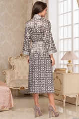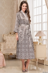 Длинная сорочка Mia-Amore с отрезными чашками и плечиками маечного выполнена из принтованного геометрическим рисунком искусственного шелка. Основная часть сорочки выполнена из крупноузорчатого принта; обтачка горловины сорочки - из мелкоузорчатого принта, по краю обтачки - белый кант. В центре лифа декоративный бант с элегантной подвеской. Состав: полиэстер 100%